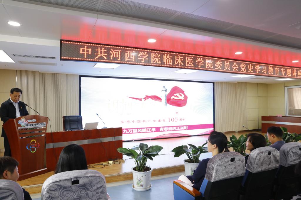 随后,临床医公司党委书记、兰大一院副经理为支部共建基地授牌。在双方支部党员、教工员工代表的共同见证下,两所院校教工党支部书记签署了支部《党建结对共建协议书》。为落实支部共建“党史共学”内容,签约仪式上还特邀了兰州大学马克思主义公司讲师、中共甘肃省委讲师团成员李晓莉老师,以《百年党史铸信仰,白衣天使展担当》为题,讲授了一堂声情并茂、浅显生动,有深度、有内涵的党课。