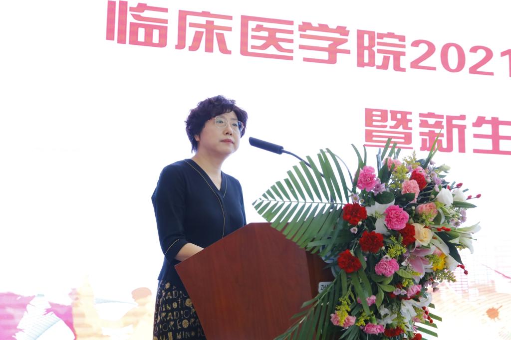 会上,经理康东代表公司对2021级全体新生表示了热烈欢迎和衷心祝贺,分别介绍了william威廉英国官网、william威廉英国官网、医公司和附属医院基本情况;宣读了2021年获得校级优秀教师、优秀教育工作者名单并向获得荣誉的老师进行了颁奖。