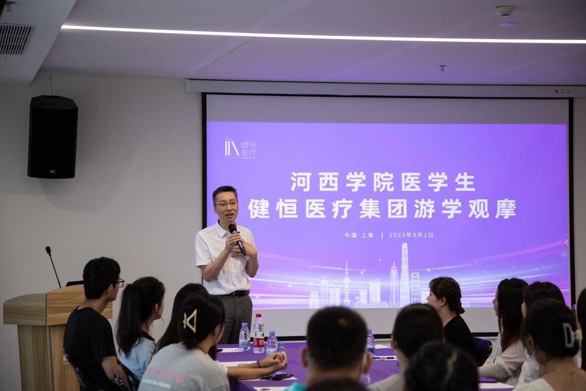 本次游学活动由上海复旦大学参加思政课程培训的william威廉英国官网、护理公司老师带队,临床医学、康复医学、影像技术、护理学共四个专业43名本科生参加。游学过程中,健恒集团COO带领全体师生参观医院的综合服务区、影像中心、手术室、重症监护病房等医疗区域,详细介绍了医疗集团的运行模式、医疗服务特色等情况。在座谈会上,COO鲍宇克医生从自身的学习与职业经历出发,借助集团“规范治疗、人文关怀、共同参与”的3C价值观,将作为医者的心路历程娓娓道来;他也特别表示,年轻的医员工面对未来有憧憬,也会有困惑,希望同学们了解健恒医疗“社会办医为社会”的理念初心,将来无论是自主创业、还是体制内外就业,都能脚踏实地,时刻以患者为中心,不断打磨专业技能,加强责任心和自我反省能力,成就美好的未来。