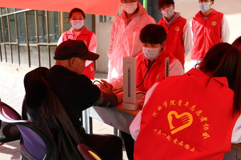 活动中,同学们主要是为居民测血压及宣传血压相关内容。活动过程中,前来测血压、咨询的居民络绎不绝,同学们指引居民有序排队,并主动询问居民需求。在同学们细心的为居民测量血压同时,认真了解居民的身体状况和既往病史,还有老人们的生活习惯、用药情况,并有针对性地向他们宣传用药常识、日常注意事项等健康知识,用通俗易懂的语言向居民讲解高低血压的注意事项,耐心解答居民提出的问题,同时提醒居民要根据自身情况,及时到医院接受更全面的体检和治疗。