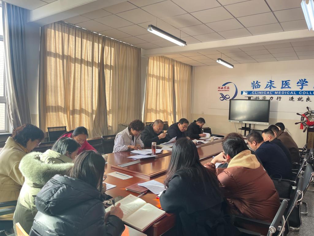 会议就审核评估、团队培训、就业工作、执业医师考前培训、访企拓岗、科研项目申报、临床技能竞赛准备、征兵工作、2019级实习转段、2020级国家水平测试等重点工作进行了安排部署。