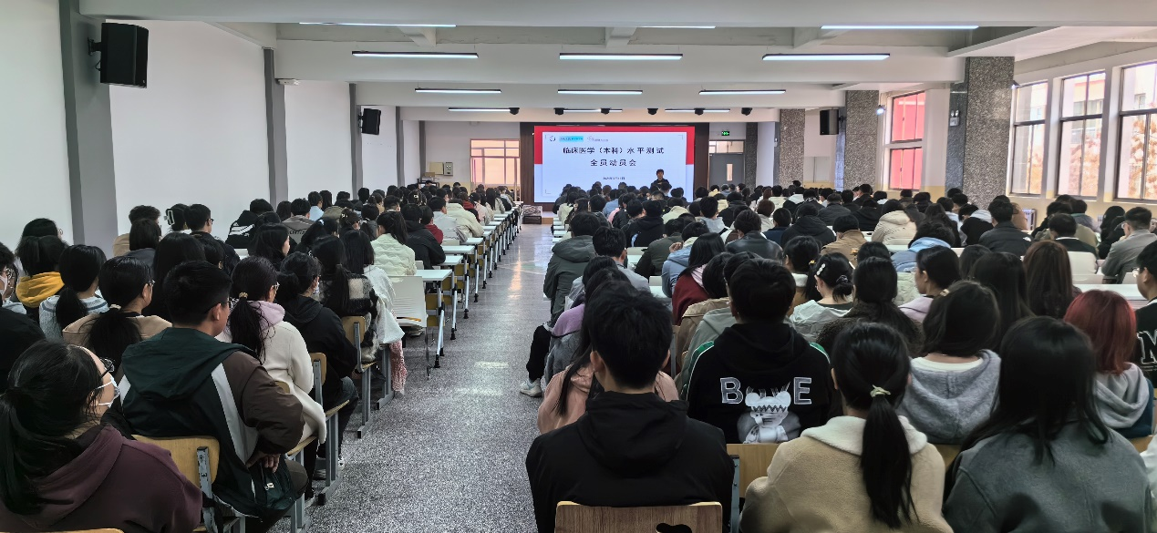 动员会上,公司领导及老师分别就临床医员工学业水平测试的背景、对公司发展的影响、水平测试的环节、水平测试成绩与毕业考核的相关性进行了系统、全面的阐述与说明;希望各位同学高度重视本次水平测试的准备,充分认识本次考试对个人学业完成、毕业考核及毕业后执业医团队格考试影响的重要性;从现在行动起来,以考试大纲为指导,在公司老师有计划安排复习的基础上认真做好应试准备。此外,公司领导也强调,临床医学是精英教育,国家层面非常重视医学教育,公司层面也是将临床医学专业做为重点专业进行建设,希望全院师生认真贯彻落实第四次党代会精神,凝心聚力,同向同行,为建成河西大学做出应有的贡献。