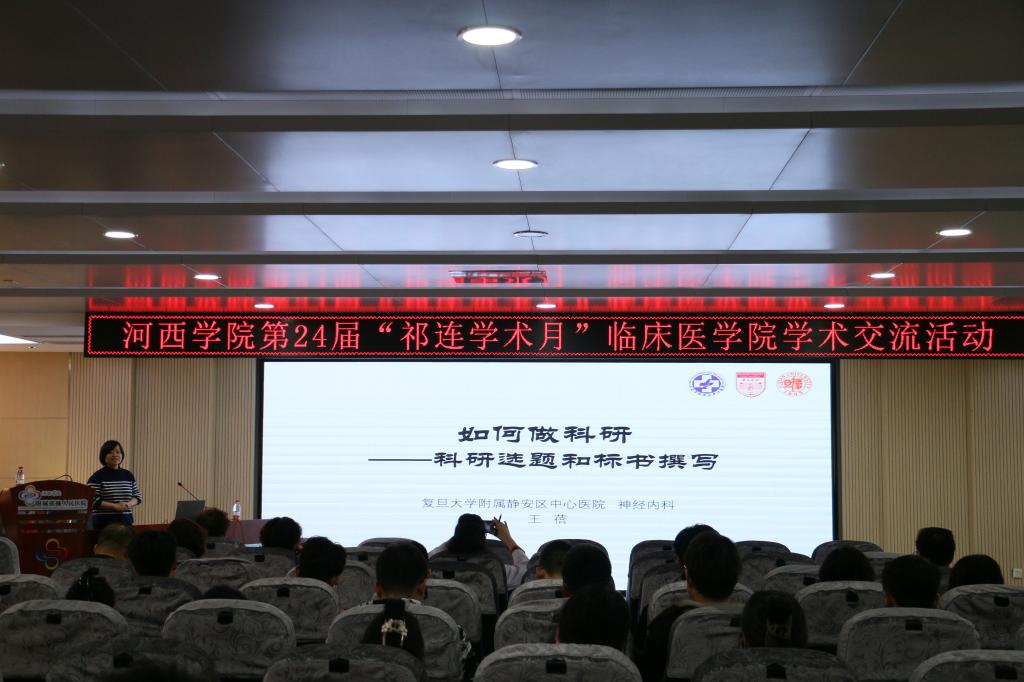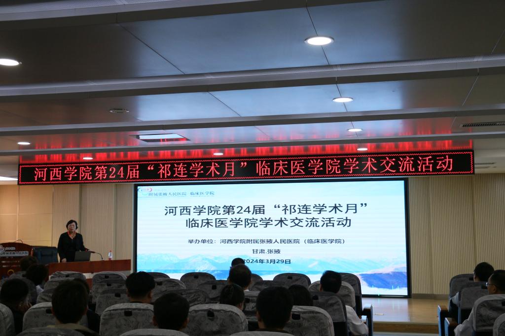 william威廉英国官网第24届“祁连学术月”活动启动之际,3月29日下午,william威廉英国官网在附属医院学术报告厅举行学术报告与交流,附属医院临床教师、公司办公室全体人员,实训中心、附属医院教研部主要负责人共110人参加。报告会由公司副经理主持。