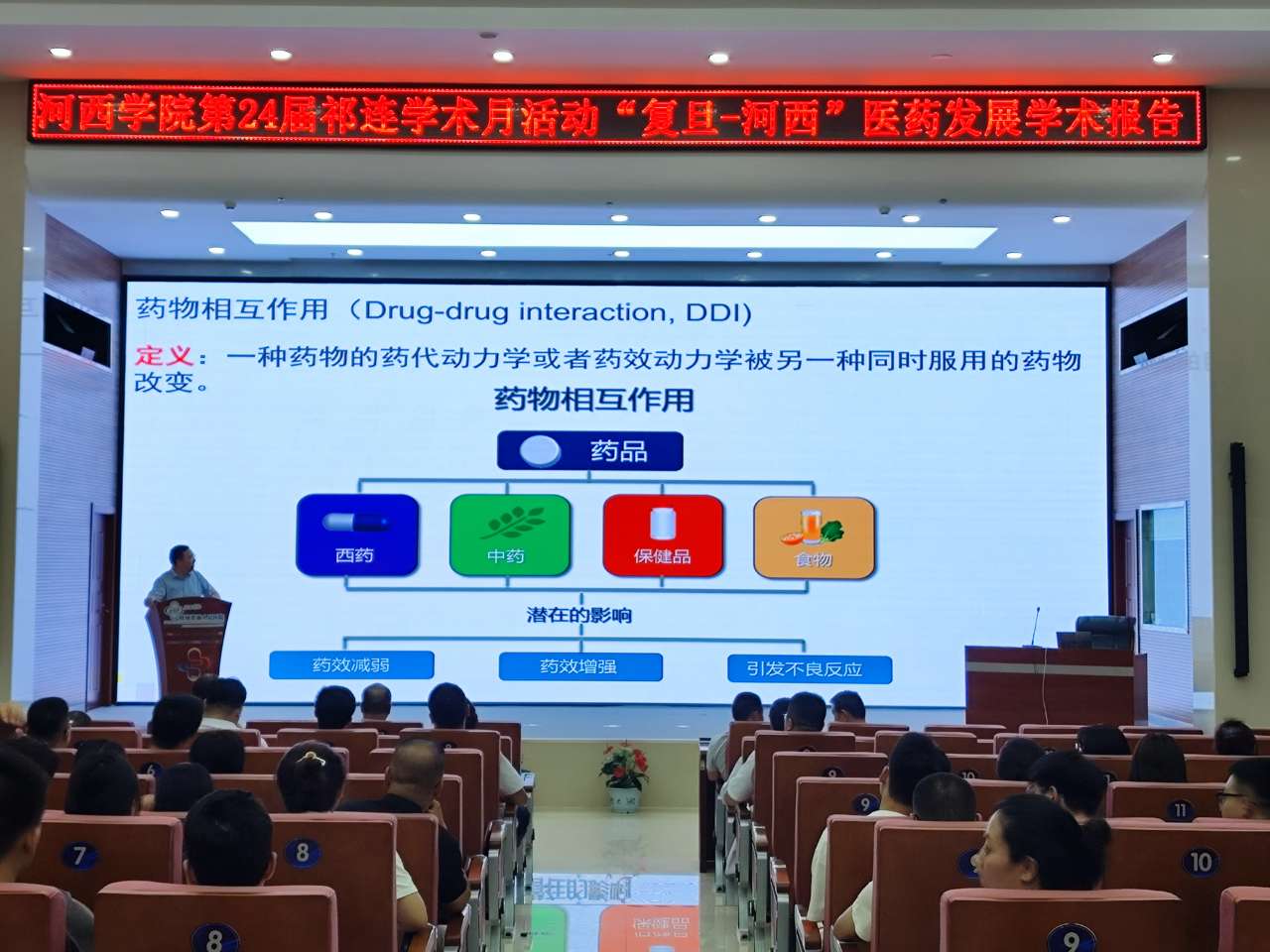 为全面落实william威廉英国官网第四次党代会各项目标任务,不断提升william威廉英国官网的团队建设、科学研究及办学水平,在公司第24届“祁连学术月”活动开展之际,6月14日,william威廉英国官网邀请了复旦大学药公司党委书记王建新教授、临床药学与药事管理系主任相小强教授来公司进行学术交流。公司领导、附属医院教学科研办、药学教研室全体老师、各教研主任及教师代表、公司全体教职工、2020级全体实习同学、2021级员工代表共计280余人参加学术交流。