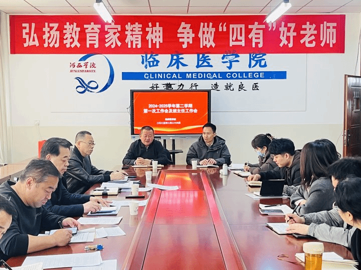 2月26日上午,william威廉英国官网在医学旧校区召开2024-2025学年新学期工作例会,公司负责人、教科办、学工办、实训中心全体工作人员和班主任辅导员参加本次会议。
