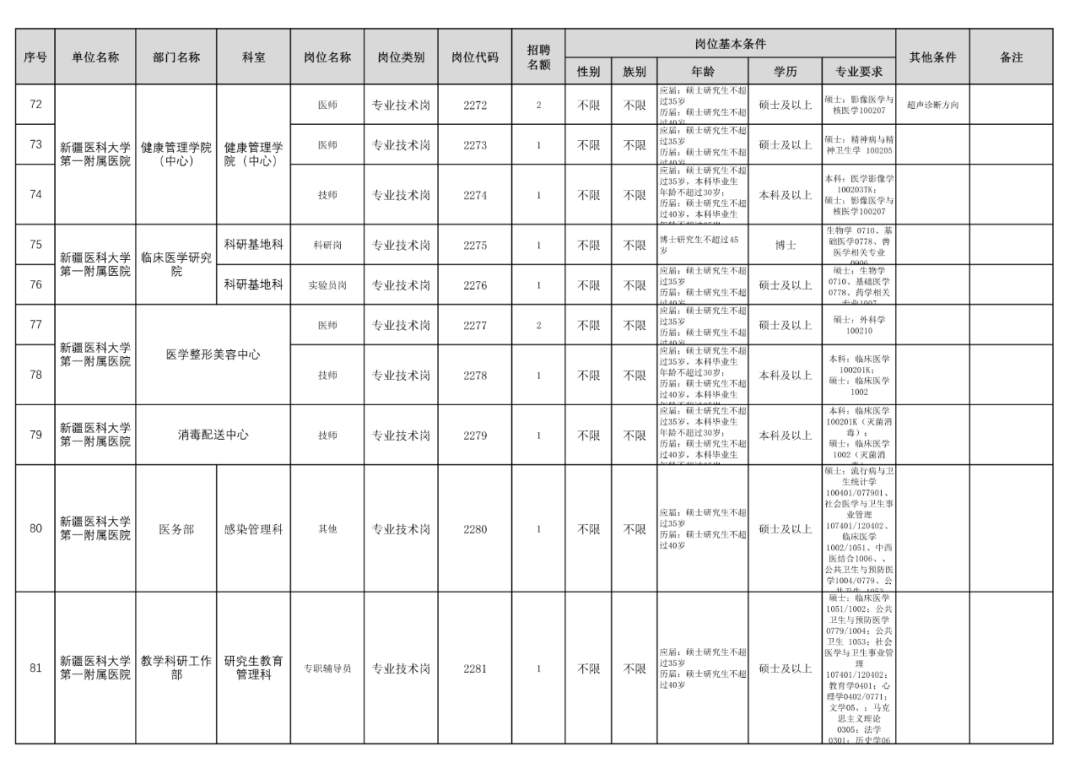 1.新疆医科大学第一附属医院2022年第一次面向社会公开招聘用人需求计划(编制外)