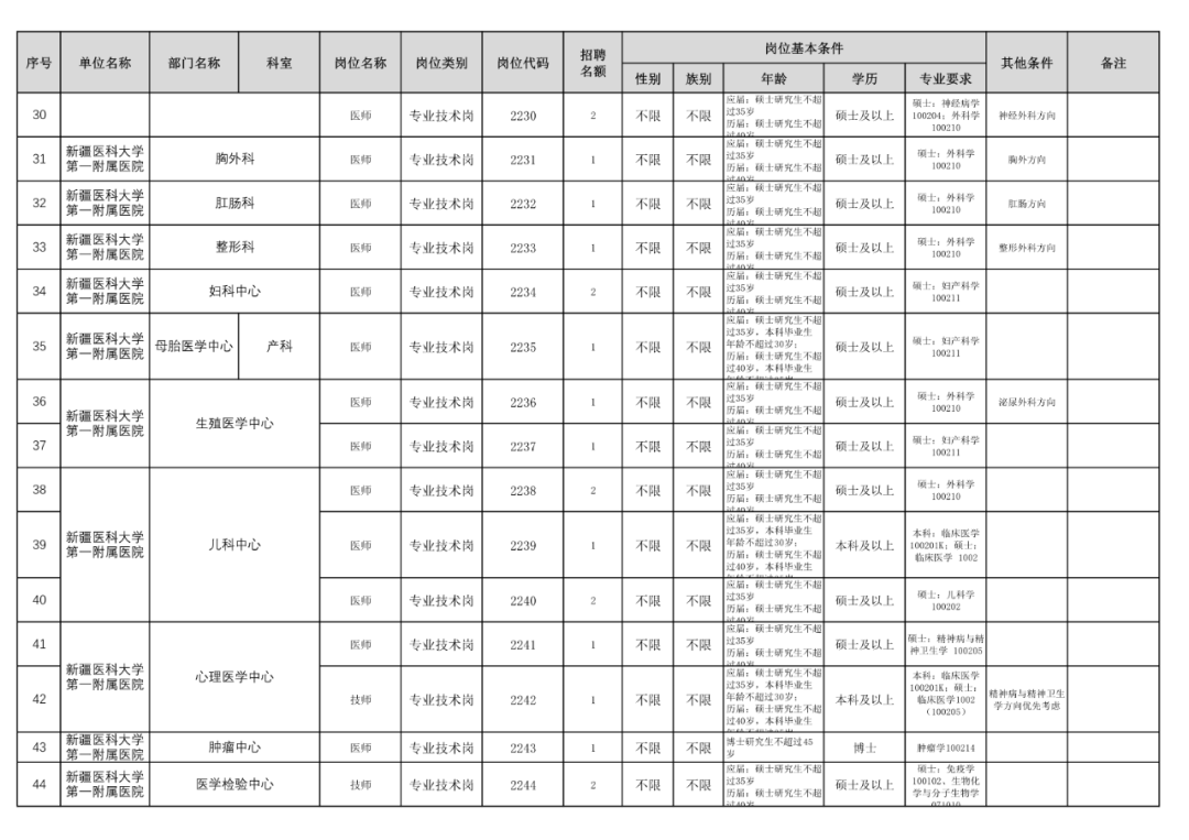 招聘工作全程接受新疆医科大学纪委、人事处及新疆医科大学第一附属医院纪检监察审计部监督。
